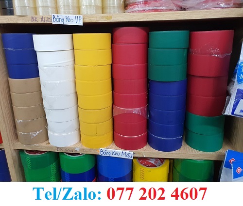 Băng keo dán gáy sách có đa dạng màu sắc: xanh, đỏ, trắng, vàng…chuyên dùng để dán gách sách, tập, tài liệu. Băng keo dán gáy sách có kích thước đa dạng 2f4, 3f6, 4f8, 7f, 10f…Công ty chúng tôi chuyên sản xuất và cung cấp sỉ lẻ băng keo dán gáy sách theo đơn hàng. Nhận giao nhanh khu vực TPHCM, gửi hàng ra chành xe, ship cod tận nơi toàn quốc