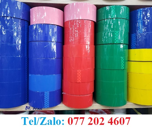 Băng keo màu là băng keo có nhiều nổi bật như xanh dương, xanh lá, vàng, đỏ, trắng, đen. Băng keo màu dán thùng được sử dụng nhiều trong các công ty, xí nghiệp, vựa trái cây, hải sản, thực phẩm. Quý khách có nhu cầu mua băng keo màu dán thùng vui lòng liên hệ để được giao nhanh nhanh trong ngày khu vực tphcm, gửi chành xe, ship cod tận nơi toàn quốc.
