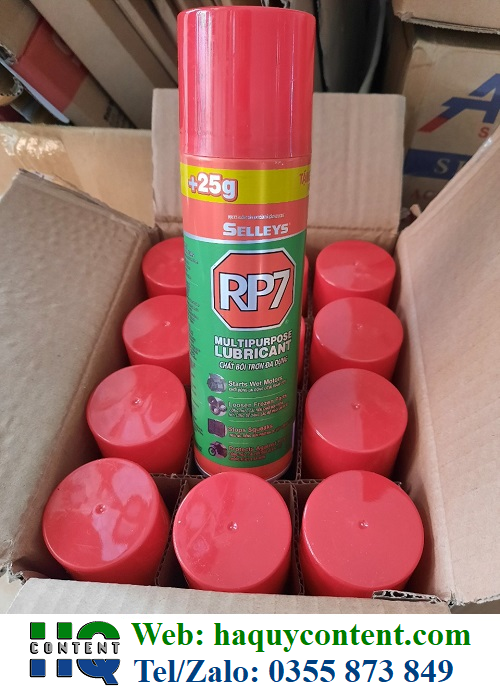 -Chai Xịt RP7 là một hỗn hợp bao gồm một loại dầu cao cấp dễ thấm nhờn. Sản phẩm được sản xuất theo công thức cải tiến đặc biệt tạo thành dung dịch đậm đặc giúp bôi trơn,bảo kệ kim loại khỏi rỉ sét