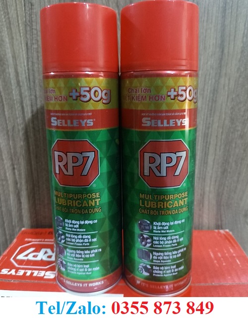Dầu chống rỉ RP7 là dung dịch bôi trơn và chống rỉ đa năng dạng chai xịt, được sản xuất bởi thương hiệu Selleys xuất xứ Thái Lan. Sản phẩm có tác dụng làm lỏng các chi tiết kim loại bị rỉ sét, bôi trơn chuyển động, đẩy ẩm – tách nước và tạo lớp màng bảo vệ giúp hạn chế ăn mòn, thường được sử dụng trong sửa chữa, bảo trì máy móc, cơ khí, xe cộ và thiết bị gia dụng.
