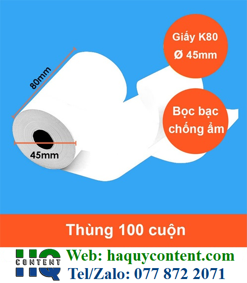 Hà Quy là một trong những công ty chuyên sản xuất và cung cấp sỉ giấy in nhiệt K80. Giấy k80 là một trong những sản phẩm phù hợp với các dòng máy in hiện đại Pos, Bixolon, Epson. Giá bán sỉ và lẻ, giao hàng toàn quốc