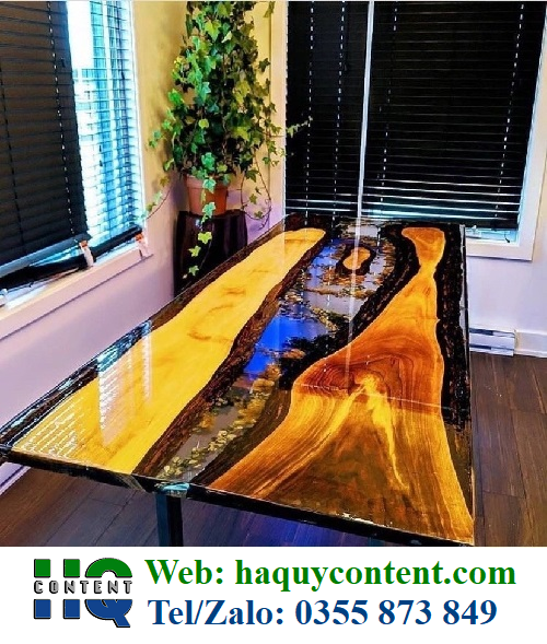 – Keo resin epoxy phủ mặt bàn: bàn trà phòng khách, bàn họp làm việc, bàn phòng họp….