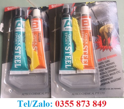 Cung cấp sỉ lẻ keo dán sắt 2 thành phần AB với A là chất keo và B là chất xúc tác. Keo được nhập khẩu chính hãng từ Thái Lan, được ưa chuộng trong dán sắt, nhựa, gốm, sứ. Khi sử dụng chỉ cần hòa trộn 2 hỗn hợp này với nhau sẽ tạo ra 1 chất đặc sánh và khô cứng. Keo đóng rắn cực kỳ bền, cứng như thép nên có thể mài dũa, khoan và gia công cơ khí để tạo tính thẩm mỹ. Công ty chúng tôi hiện đang có sẵn keo dán sắt 2 thành phần, phục vụ mọi nhu cầu mua sỉ, mua lẻ.