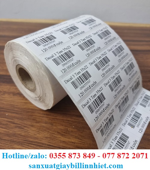 – Giấy decal nhiệt in tem nhãn, mã vạch 3 tem: 35x22mm (tem nhà sách, tem siêu thị, tem shop thời trang,…)