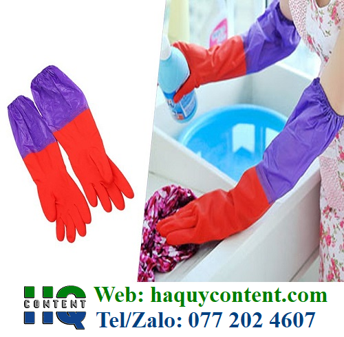 -Với chị em có lẽ găng tay cao su gia dụng là vật dụng quá đỗi thân thuộc. Loại găng tay này có thiết kế dài đến giữa cánh tay, ôm sát lấy tay, mục đích để ngăn ngừa sự xâm nhập của nước, chất tẩy rửa, các vật sắc nhọn hay hóa chất độc hại có thể gây dị chứng, ăn mòn da tay.