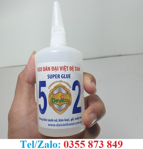 Keo 502 hiệu Đại Việt giá tốt là một loại keo dán siêu dính có độ kết dính cao và được sử dụng để dán nhiều loại vật liệu như gỗ, nhựa, vải, da, kính, kim loại. Với thành phần chính là Cyanoacrylate, thời gian khô nhanh chóng, mang lại hiệu quả dán chắc chắn và bền bỉ. Sẵn keo 502 Đại Việt số lượng lớn, ship hỏa tốc tận nơi tại TPHCM, gửi chành xe đi tỉnh toàn quốc.
