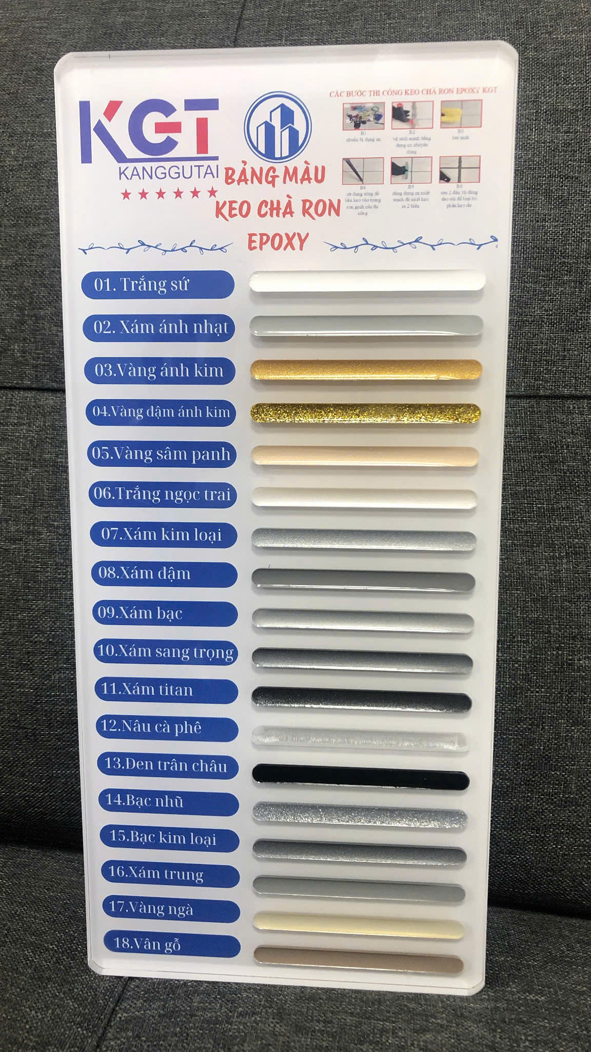 bảng màu keo chà ron gạch KGT