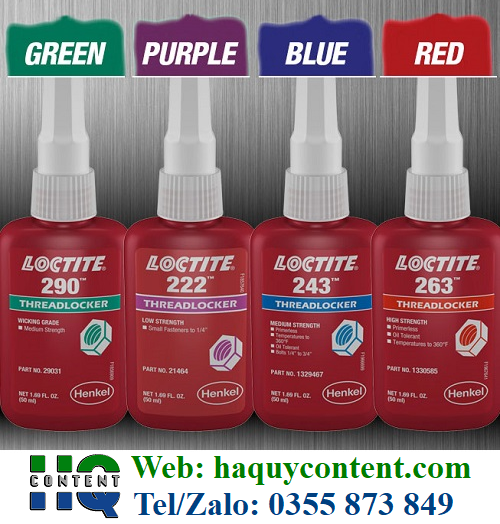 -Những sản phẩm khóa ren Loctite ngăn chặn sự tự nới lỏng và ngăn ngừa mất tải kẹp do rung và sốc tải. Chúng là những chất lỏng dễ chảy mà hoàn toàn có thể lấp đầy những khoảng trống giữa các mối ren. Được sử dụng để lắp ráp ren nhanh hơn, Khóa ren Loctite đảm bảo những đường ren được an toàn trong lắp ráp và loại bỏ xói mòn bằng cách tạo ra một việc lắp ráp đồng nhất.