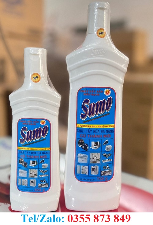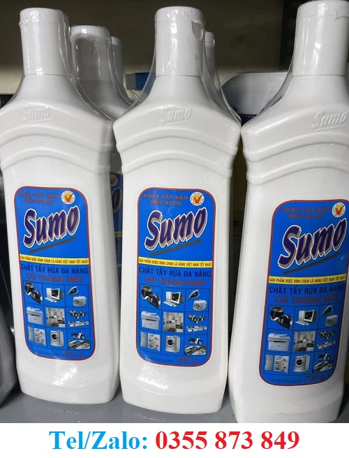 Chai tẩy đa năng Sumo (700g): Nổi bật nhất, dùng cho đa mục đích: làm sạch bếp gas, bàn ăn, máy vi tính, vết ố trên bề mặt inox, gạch men, đồ nhựa, da, simili, và nội thất xe hơi.