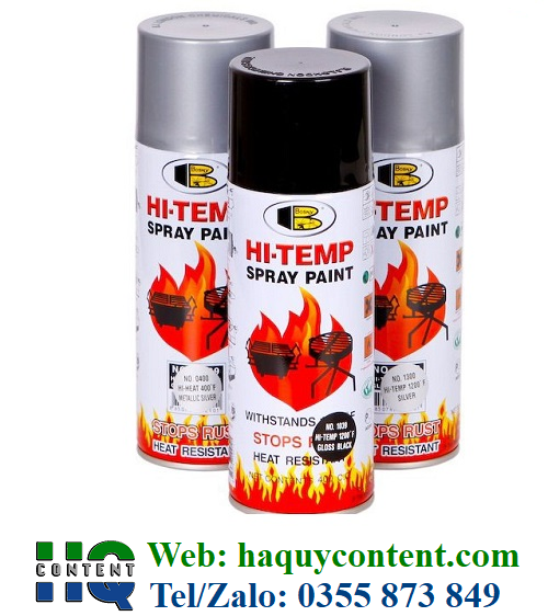 + Sơn xịt chịu nhiệt độ cao Bosny: chịu được nhiệt độ từ 600 oF đến 1200 oF.
