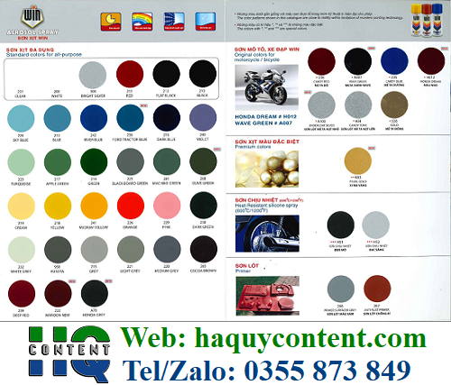 Sơn xịt WIN là loại sơn Lacquer vói công thức đặc biệt thích hợp sử dụng cho vùng nhiệt đới. Sơn có độ bóng cao, khô nhanh và kết dính tuyệt hảo.