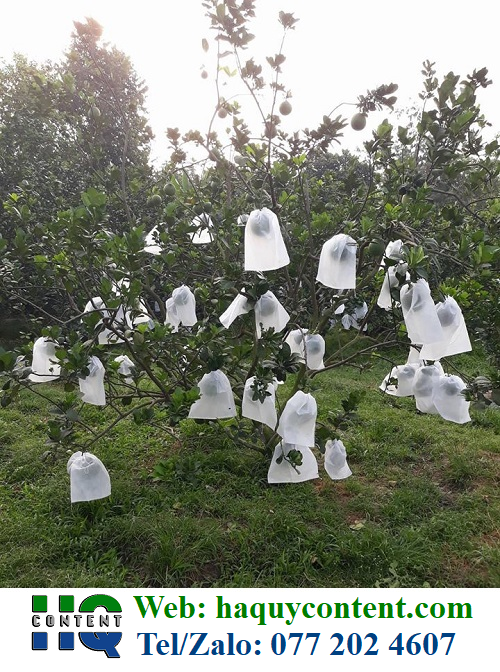 -Túi bọc trái cây là dạng túi màu trắng giúp cho trái bưởi có thể quang hợp dễ dàng, không gây biến dạng về sắc tố của trái.